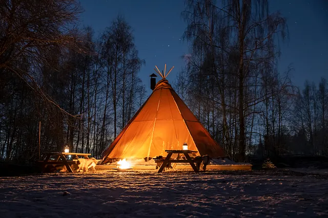 Ønsker du en opplevelse litt utenom det vanlige? Den oppvarmede lavvoen ved Vendkvern-dammene har en touch av glam, og innbyr til hyggelige lag og sammenkomster.