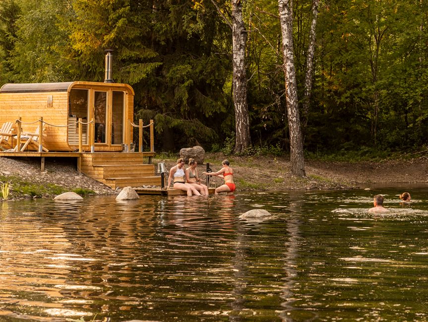 Hos oss kan du invitere med deg venner familie, bekjente og kollegaer til et privat opphold i badstua og lavvoen. Nydelig uteplass med utsikt mot dammene.