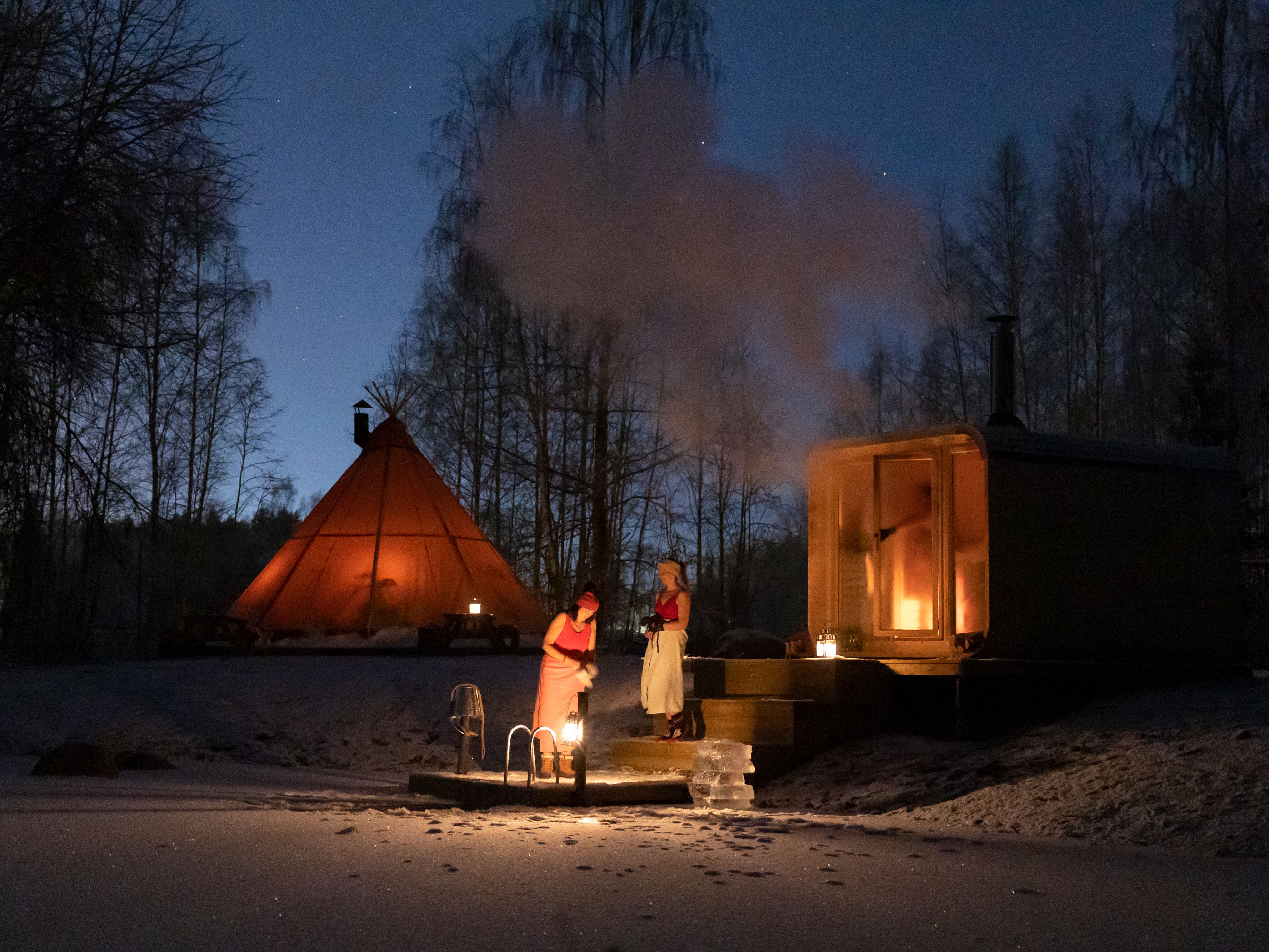Vi tar oss av alt forberedelsene før ditt opphold. Vår badstue er varmet opp og klar til bruk, og lavvoen sørger vi for er komfortabelt oppvarmet. Du vil også finne en stor åpen peis med grill, perfekt for koselige stunder sammen
